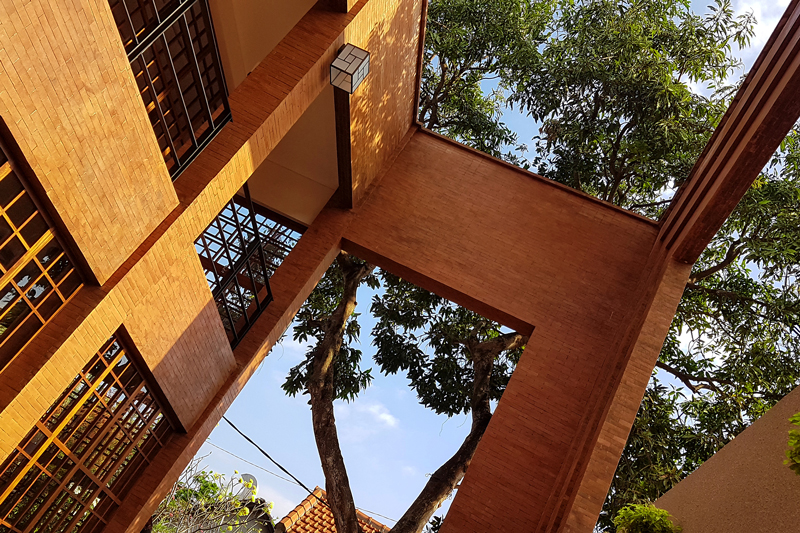 The interior is a blend of Japanese architecture, Balinese material and French savoir-faire, reflecting the sense of purity and details of Japan, the nobleness of Bali’s raw material, expressing a certain zenitude through earth tones, indigo dye fabrics and exposed red brick walls. Planned inside out, the intention of our French architect & interior designer is to offer a warm and homey feel in a minimalist and refined interior. Original Shoji inspired glass doors made out of timeworn teak, traditional shibori patchwork ceiling created by a local artist, the serene Indigo colour on denim cushions, the elegant handmade stone floor, and the Italian marble table top for a soupçon of modernity, creating a harmonious and feel-good atmosphere, matching flawlessly our cuisine.